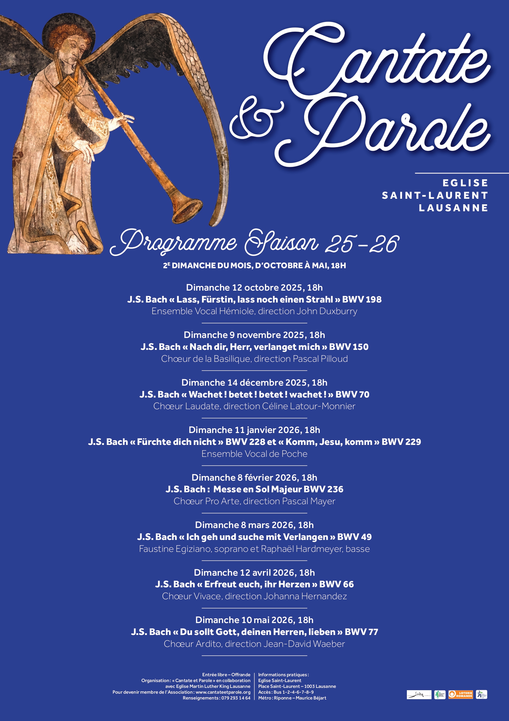 A la mémoire des 250 ans de la mort de J.S. Bach, Pascal Pilloud a joué en concert l'intégrale de l'oeuvre d'orgue du Cantor avec les chorals chantés et alternés.